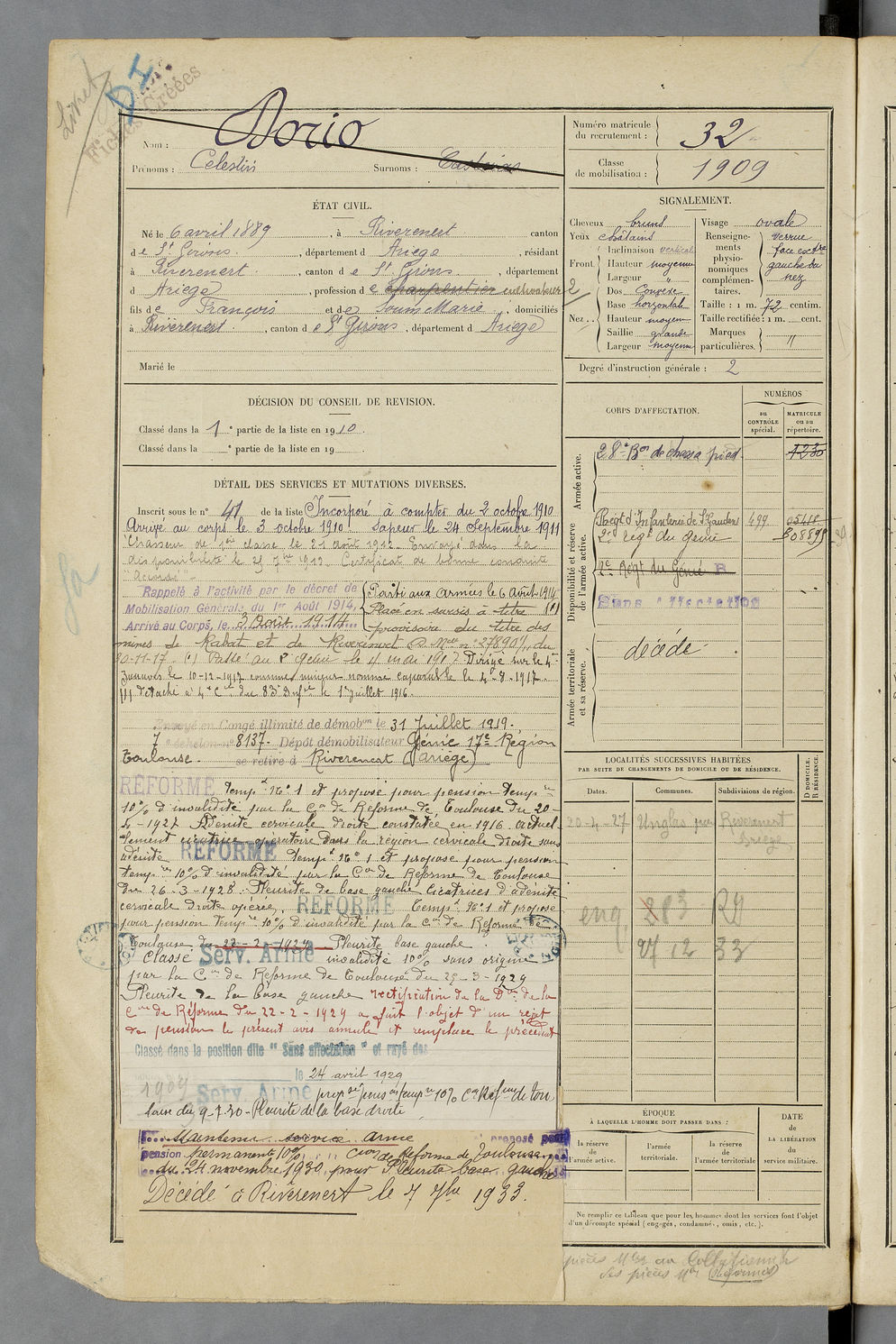 | Delort | Joseph | FOIX | 129 W 50 | 1909 | Saint-Girons | Saint-Girons | 30 |