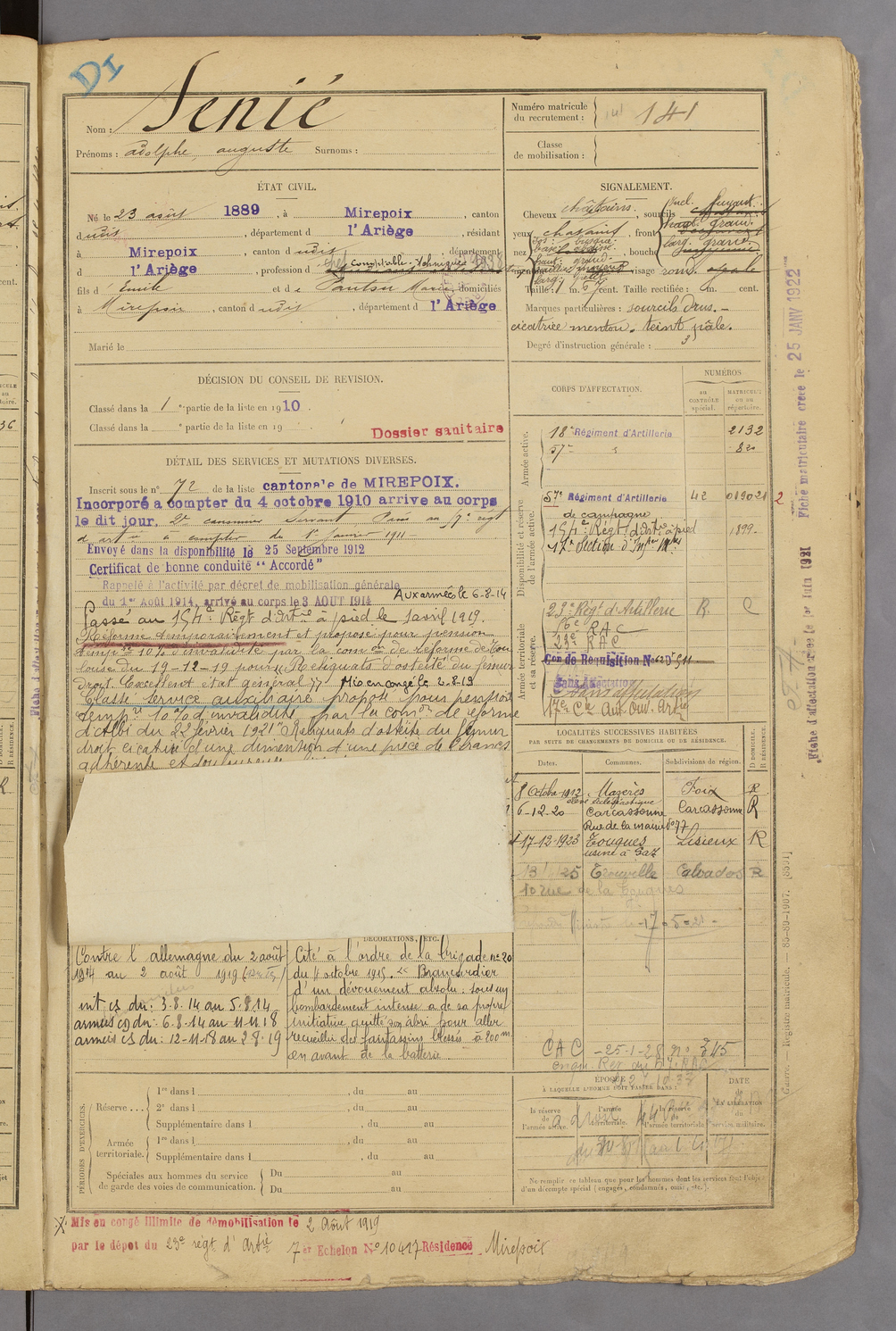 | Senié | Adolphe Auguste | FOIX | 129 W 47 | 1909 | Mirepoix | Mirepoix | 141 |