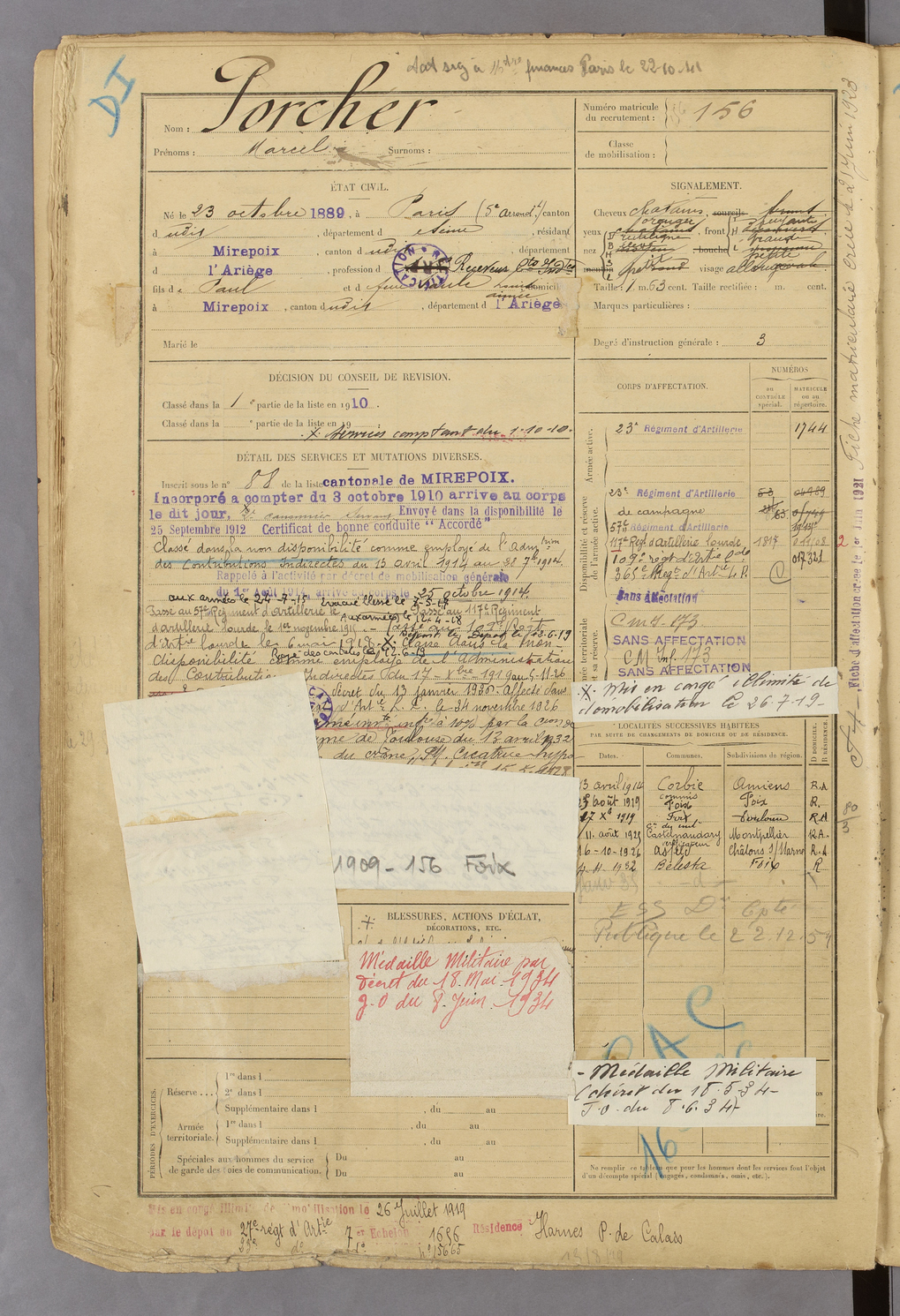 | Porcher | Marcel | FOIX | 129 W 47 | 1909 | Paris | Mirepoix | 156 |