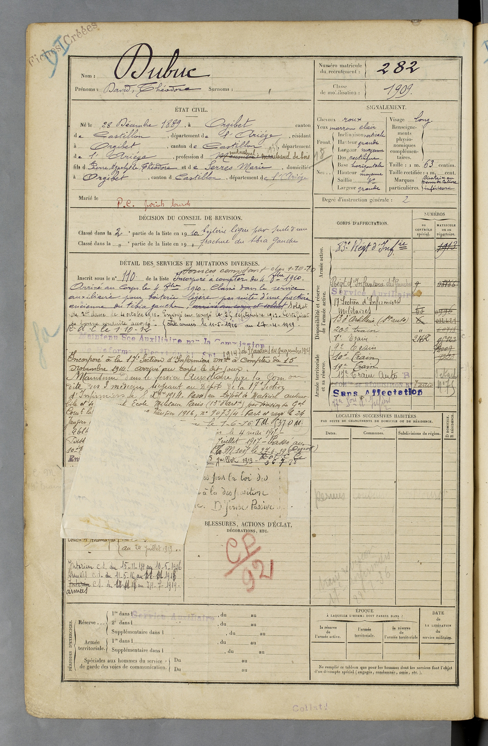 | Dubuc | David Théodore | FOIX | 129 W 50 | 1909 | Orgibet | Orgibet | 282 |