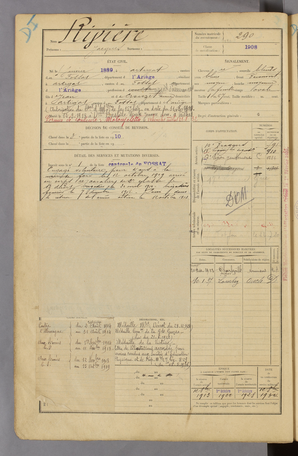 | Rivière | Jacques | FOIX | 129 W 47 | 1909 | Artigat | Artigat | 290 |