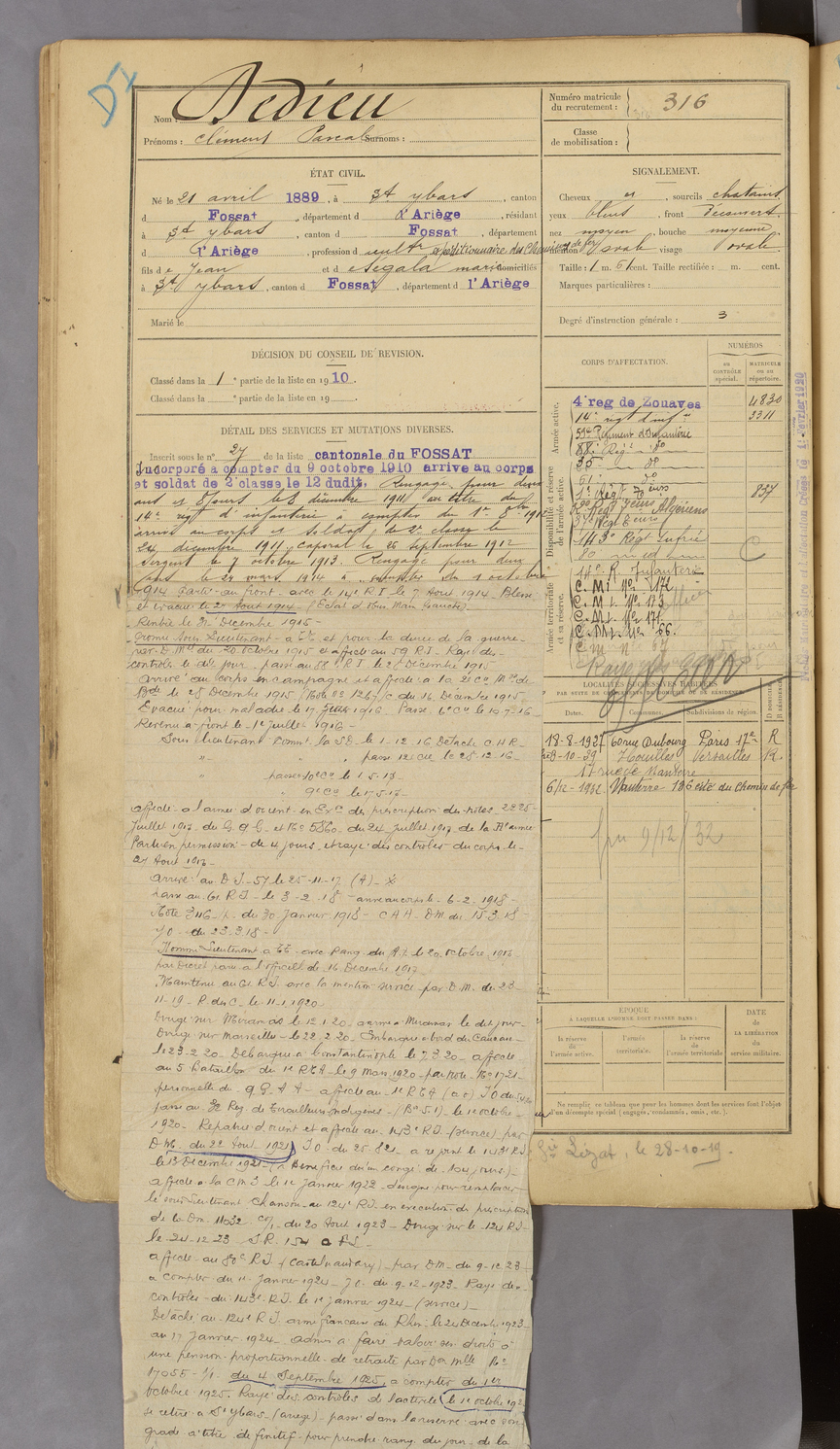 | Dedieu | Clément Pascal | FOIX | 129 W 47 | 1909 | Saint-Ybars | Saint-Ybars | 316 |