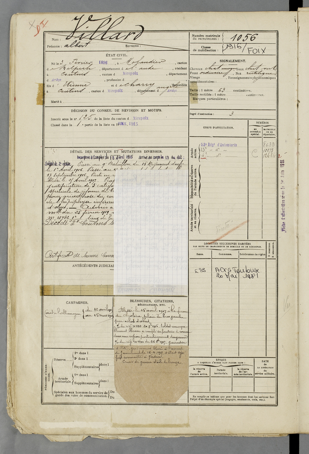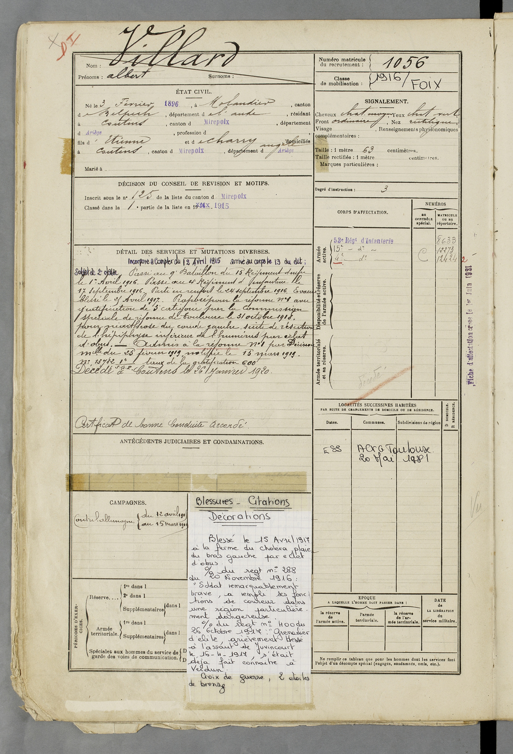 | Villard | Albert | FOIX | 129 W 83 | 1916 | Molandier | Coutens | 1056 |