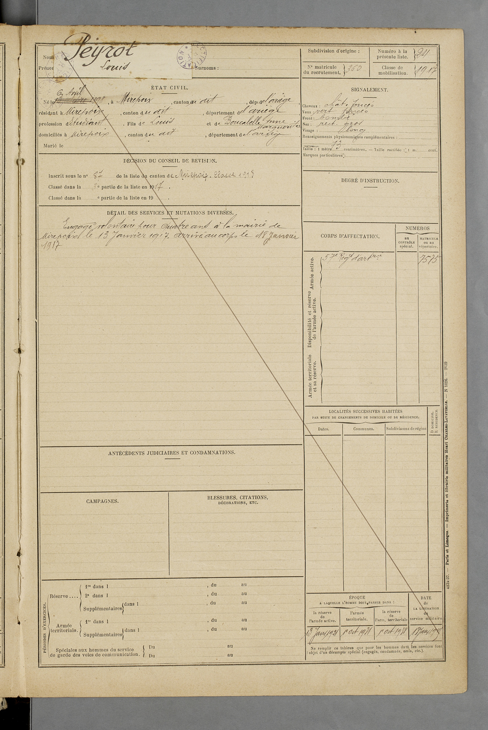| Peyrot | Louis | FOIX | 129 W 86 | 1917 | Mirepoix | Mirepoix | 360 |