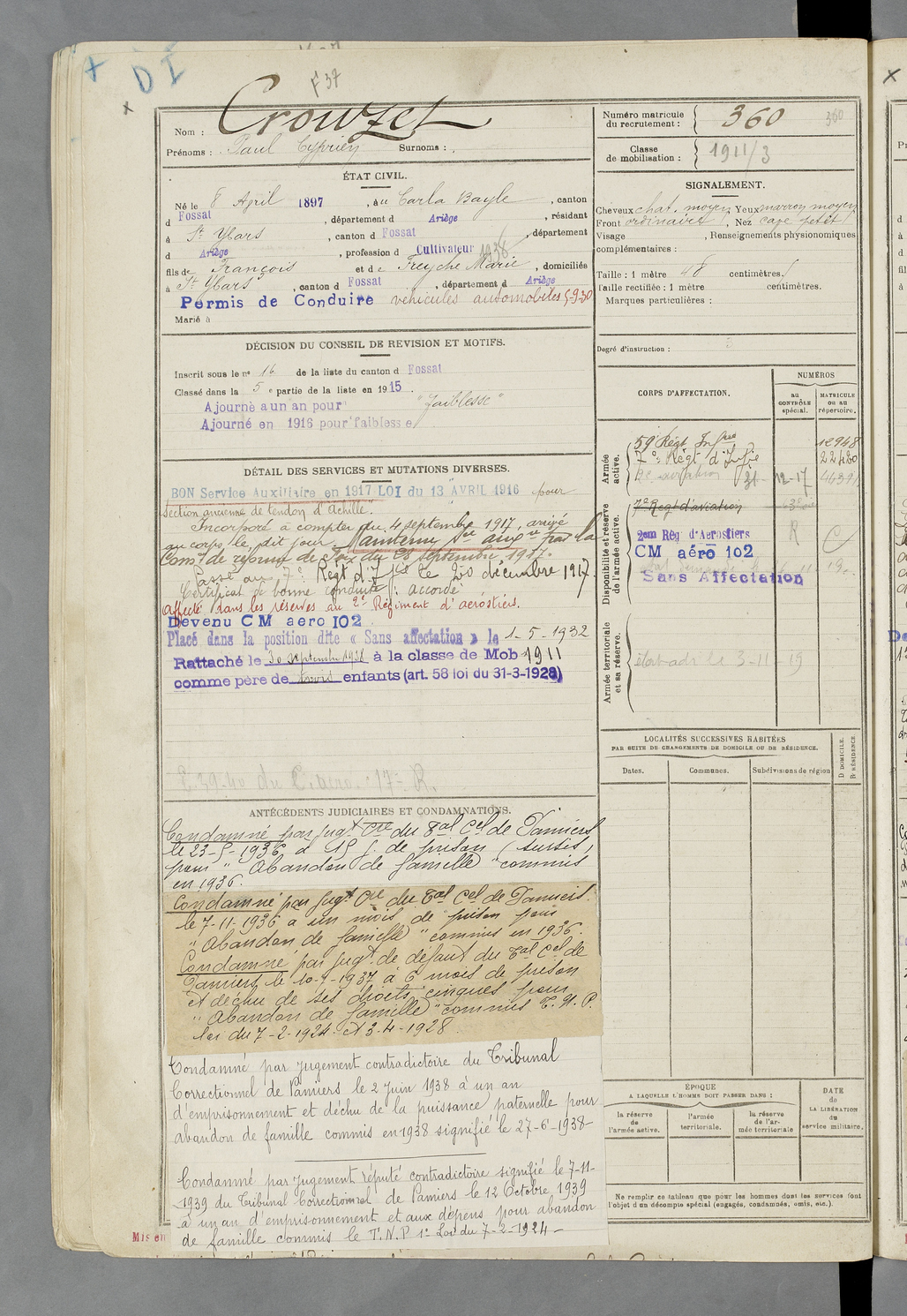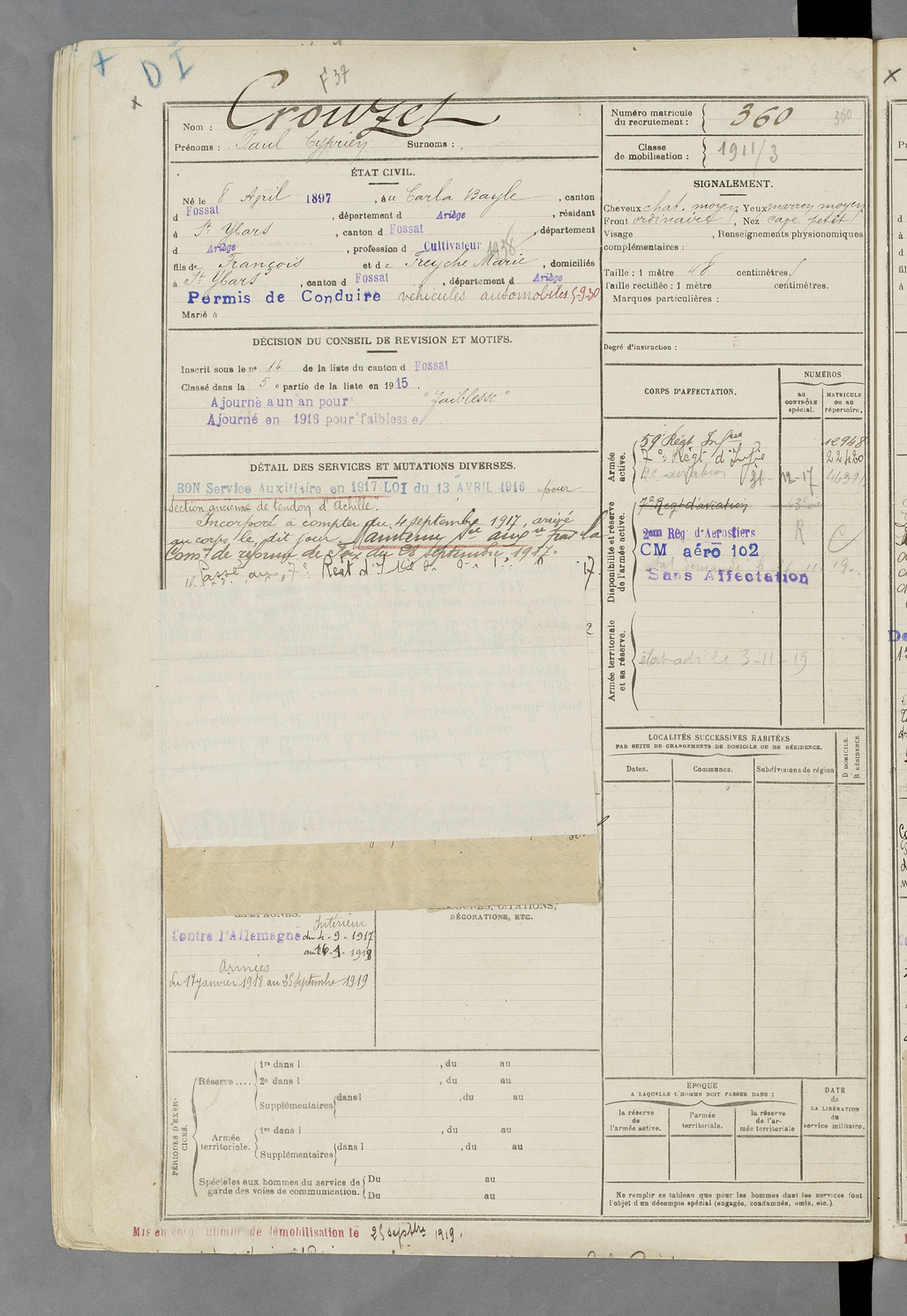 | Crouzet | Paul Cyprien | FOIX | 129 W 87 | 1917 | Carla-Bayle (Le) | Saint-Ybars | 360 |