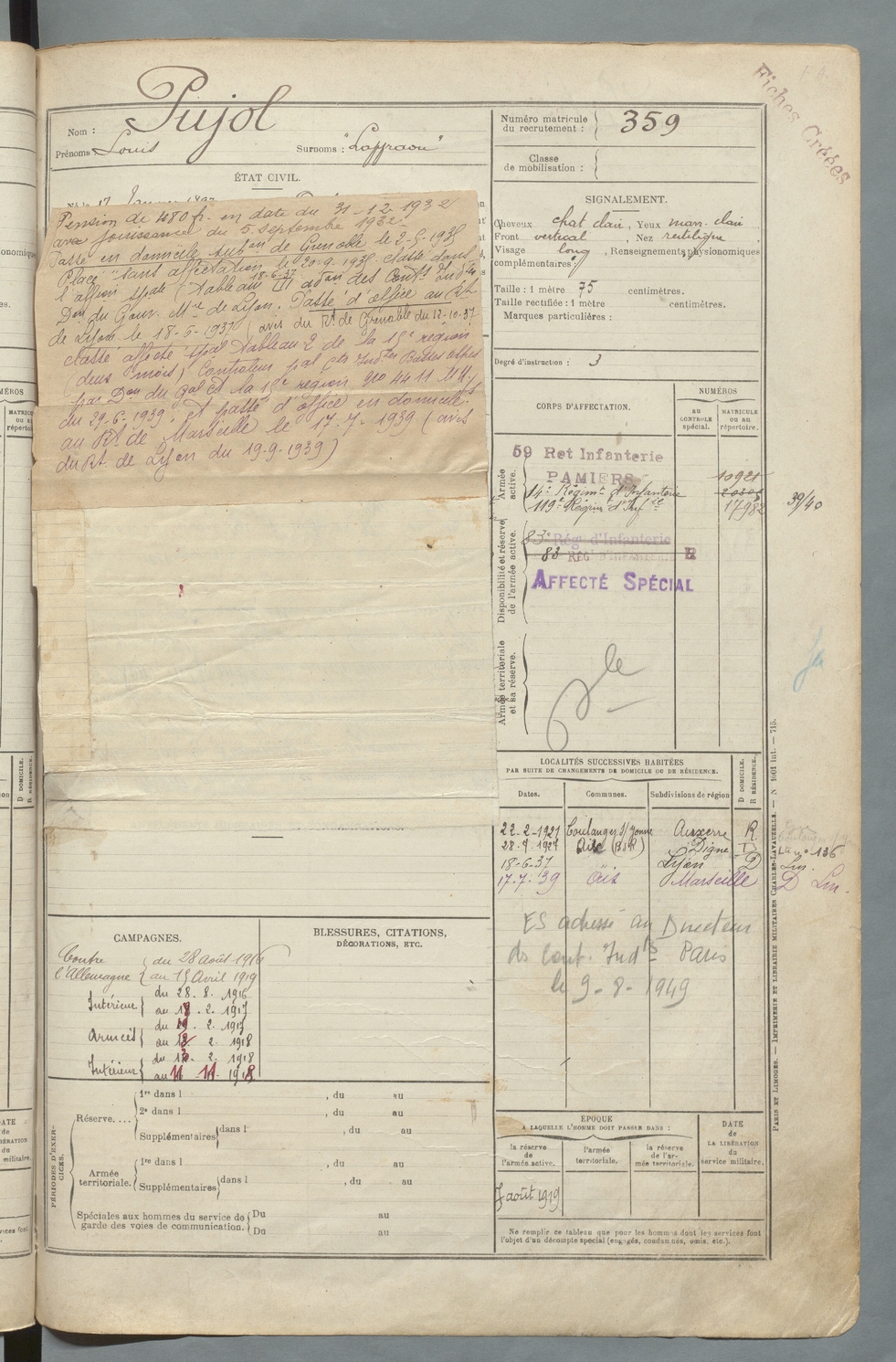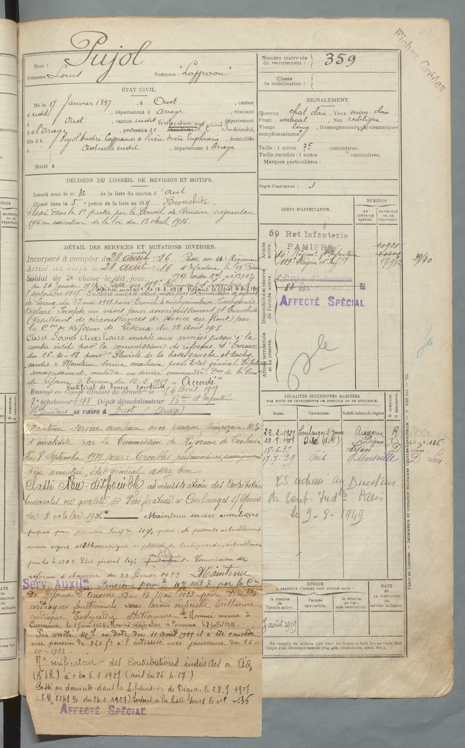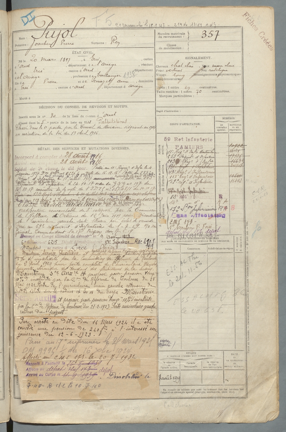 | Pujol | Louis dit Lappraou | FOIX | 129 W 90 | 1917 | Oust | Oust | 359 |
