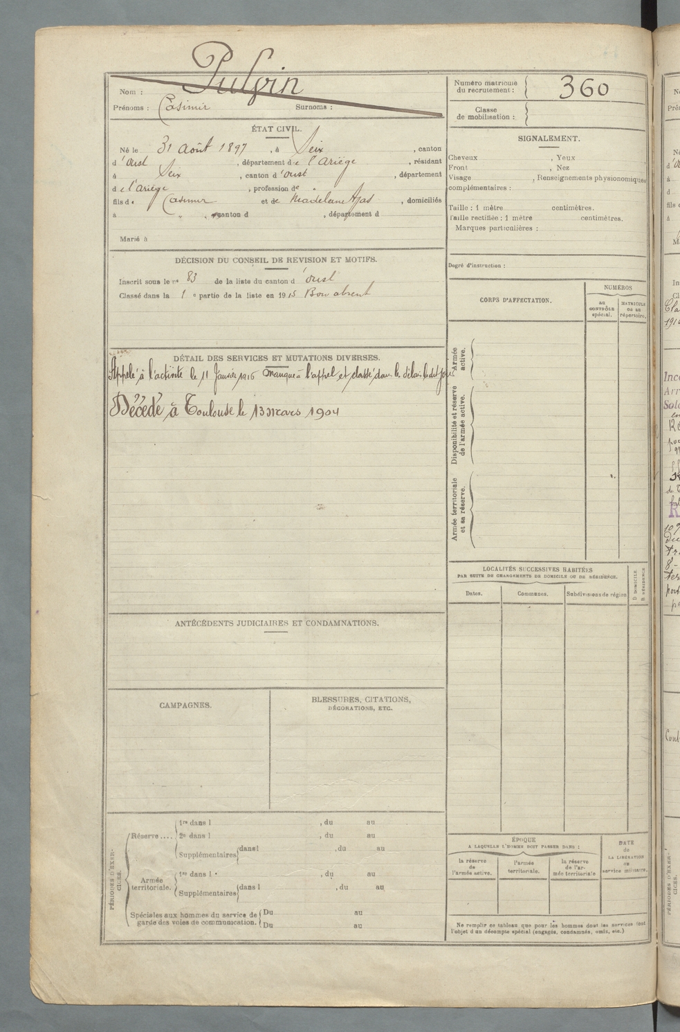 | Pulvin | Casimir | FOIX | 129 W 90 | 1917 | Seix | Seix | 360 |