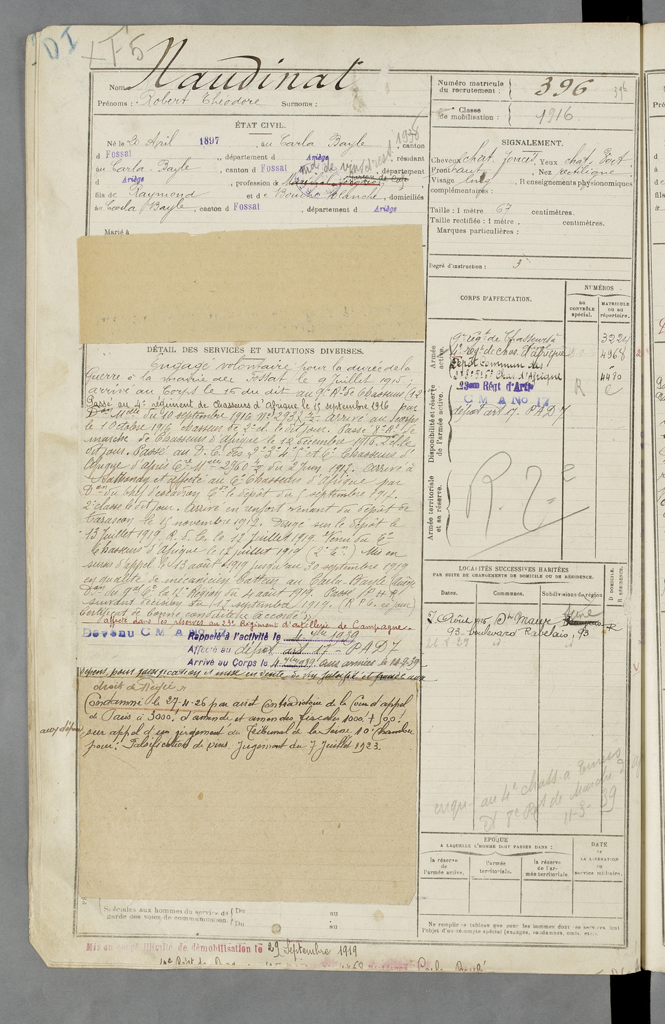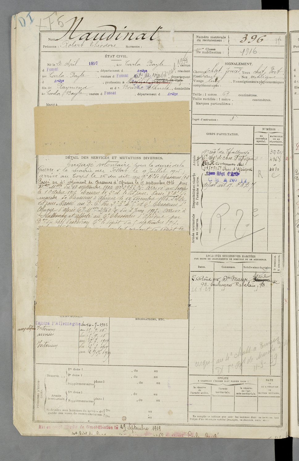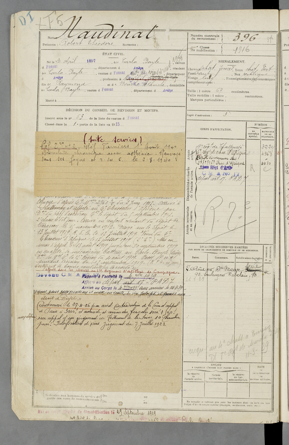 | Naudinat | Robert Théodore | FOIX | 129 W 87 | 1917 | Carla-Bayle (Le) | Carla-Bayle (Le) | 396 |