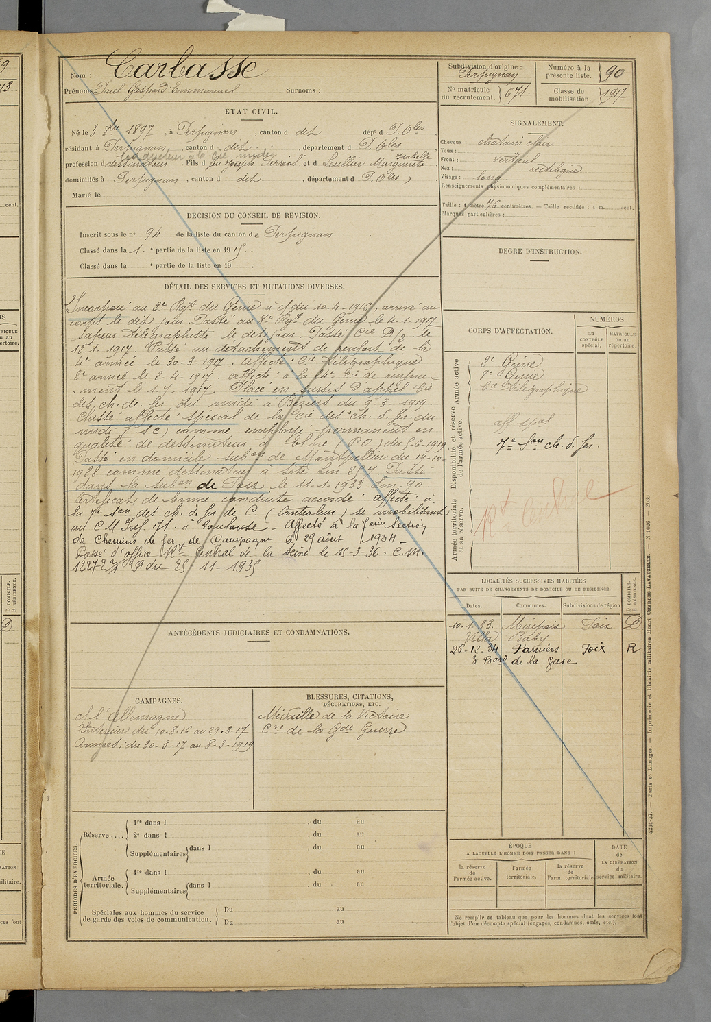 | Carbasse | Paul Gaspard Emmanuel | FOIX | 129 W 86 | 1917 | Perpignan | Perpignan | 671 |
