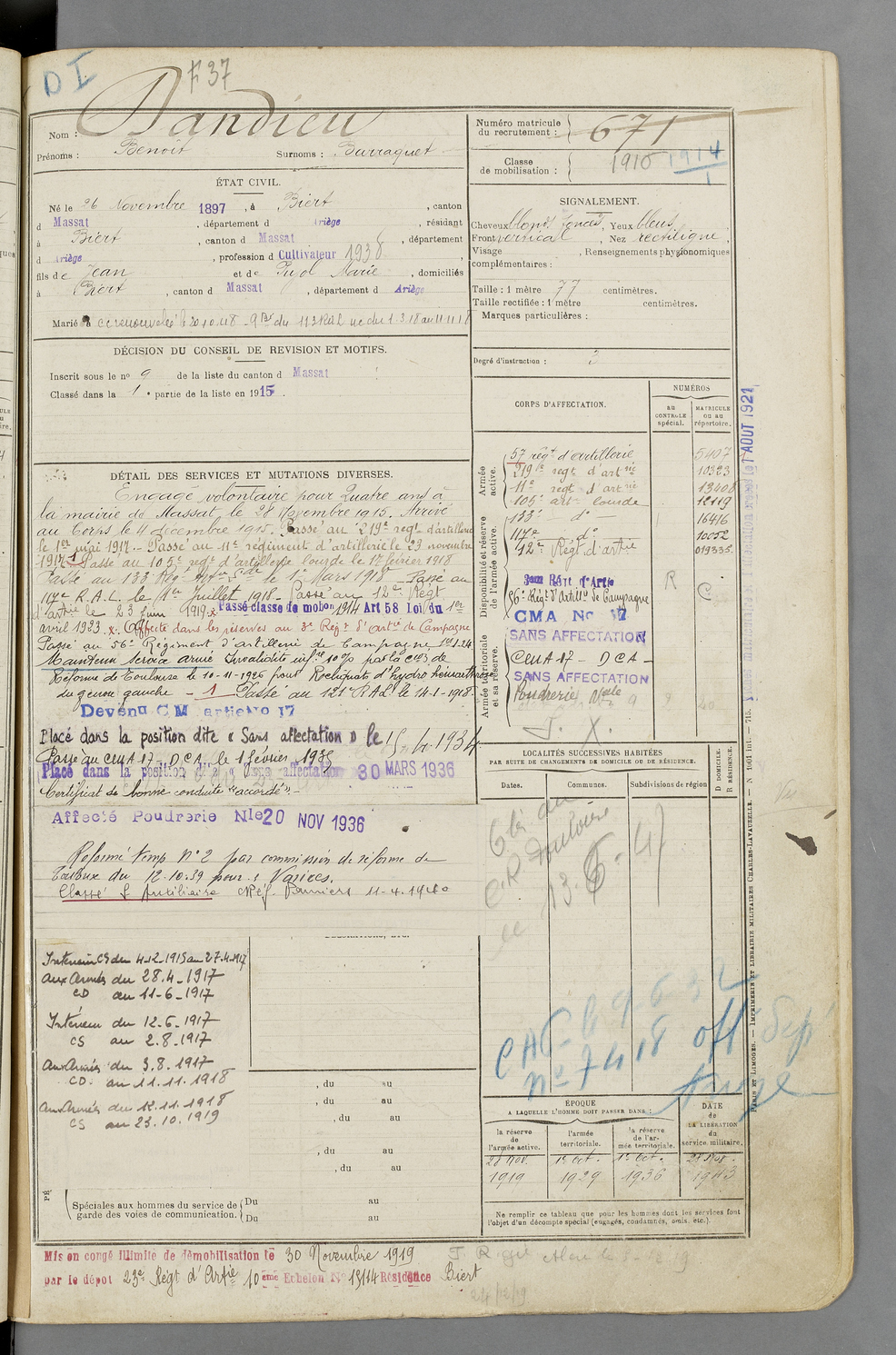 | Dandieu | Benoît dit Barraquet | FOIX | 129 W 88 | 1917 | Biert | Biert | 671 |