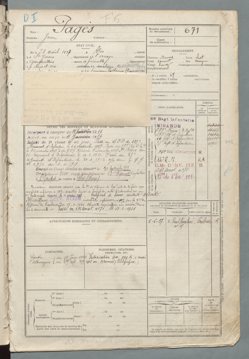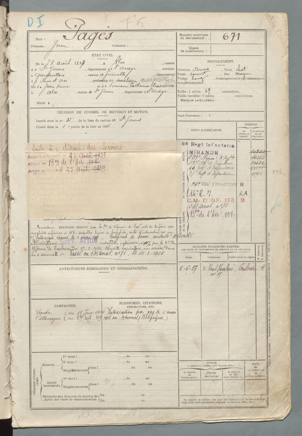 | Pagès | Jean | FOIX | 129 W 90 | 1917 | Alos | Gandevillers | 671 |