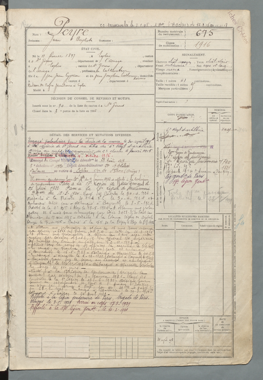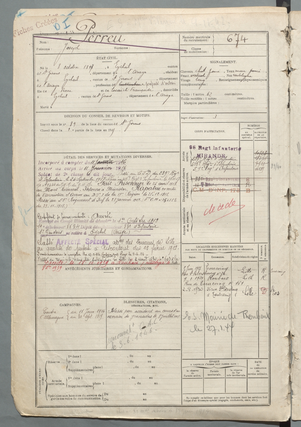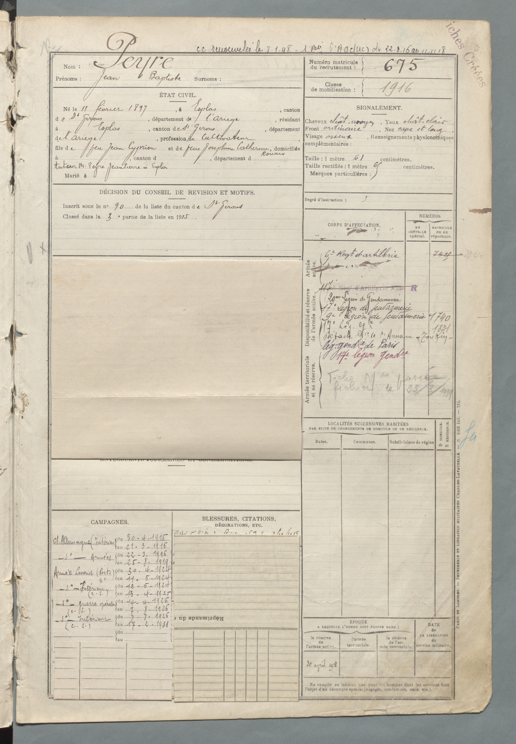 | Pérreu | Joseph | FOIX | 129 W 90 | 1917 | Eycheil | Eycheil | 674 |